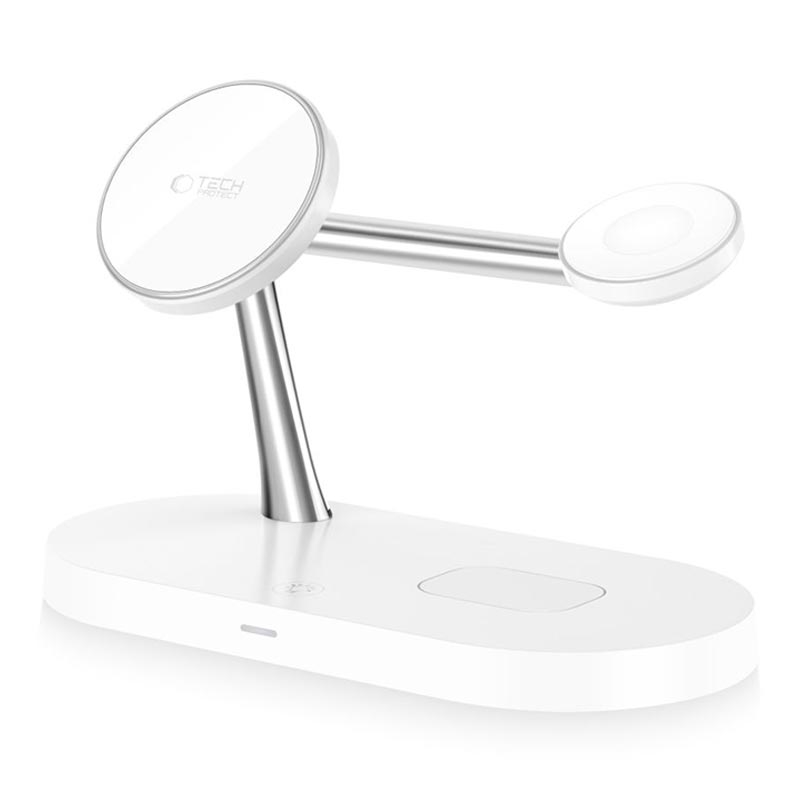 Tech-Protect A12 3-i-1 MagSafe trådløs oplader 15W med indbygget LED-lampe - hvid