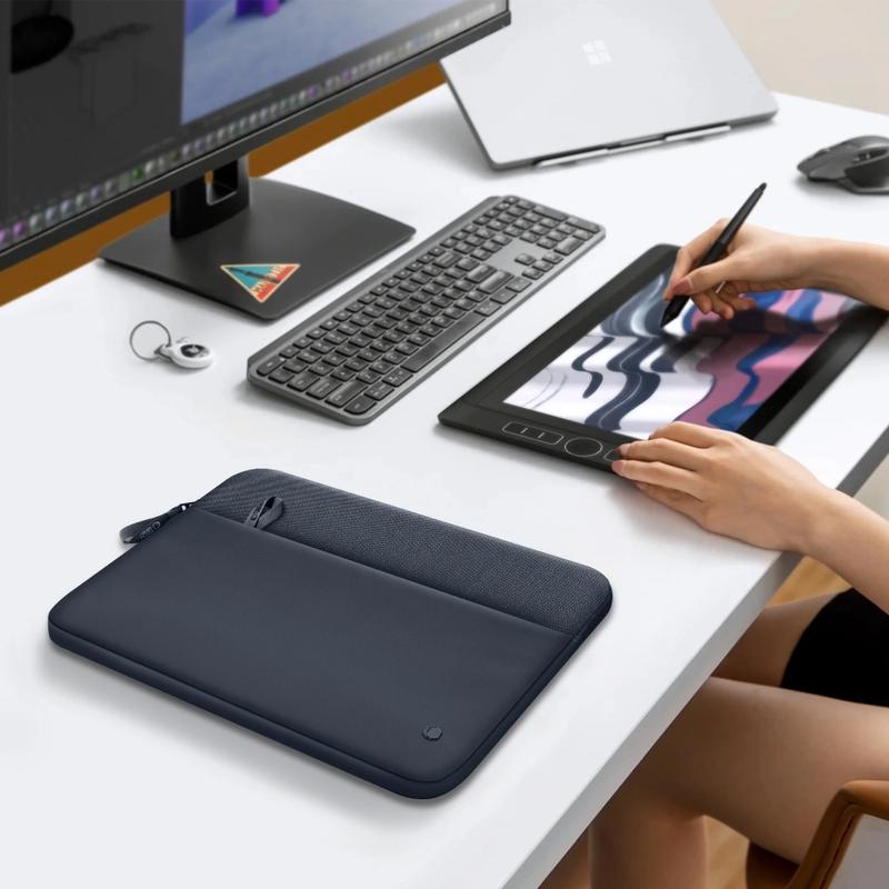 Tech-Protect laptop-sleeve 13–14" er en minimalistisk sleeve til hverdagsbrug, der er designet til at beskytte din laptop uden at fylde for meget. Den er fremstillet af slidstærkt tekstilmateriale med blødt inderfor og hjælper med at reducere risikoen for ridser, skrammer og mindre stød under transport i en rygsæk eller taske. En rummelig frontlomme holder styr på vigtige ting som opladere, kabler, en mus eller en notesbog – ideel til pendling, universitetet og kontoret.