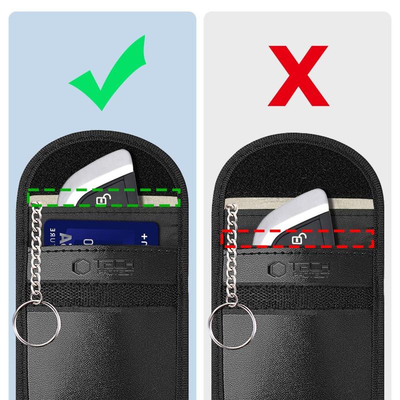- Avanceret RFID-blokering: Dobbeltlags RF-materiale blokerer effektivt for RFID-, Bluetooth-, WiFi- og GPS-signaler og sikrer, at dine nøgler forbliver beskyttet mod uautoriseret adgang.