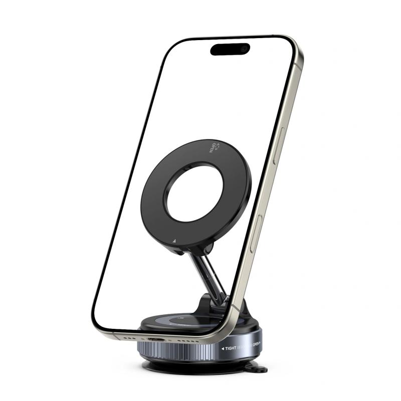 Mange holdere tvinger dig til at vælge mellem lim på instrumentbrættet, svage klemmer eller rodede arme. N60 kombinerer en førsteklasses sugekop med præcis MagSafe-justering, hvilket giver EU-kørere en stabilitet, der er værd at køre med, betjening med én hånd og et design, der er elegant nok til hjemmet eller kontoret. Ingen besværlige kløer, intet klæbende rod - bare klik, drej, gå.