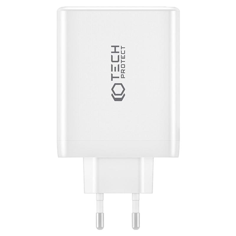 Tech-Protect NC100W-GAN 4-Ports Netværksoplader - Power Delivery, Quick Charge - 3xUSB-C, USB-A