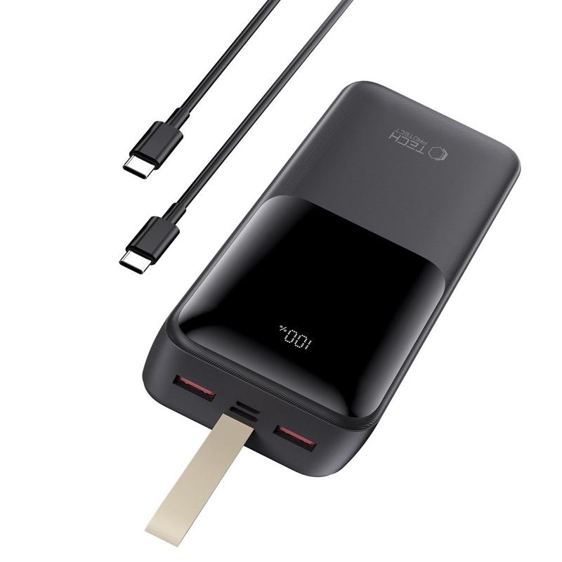 Tech-Protect PB03 Power Bank 30000mAh med USB-C, 2x USB-A-porte, LED-display - 22.5W