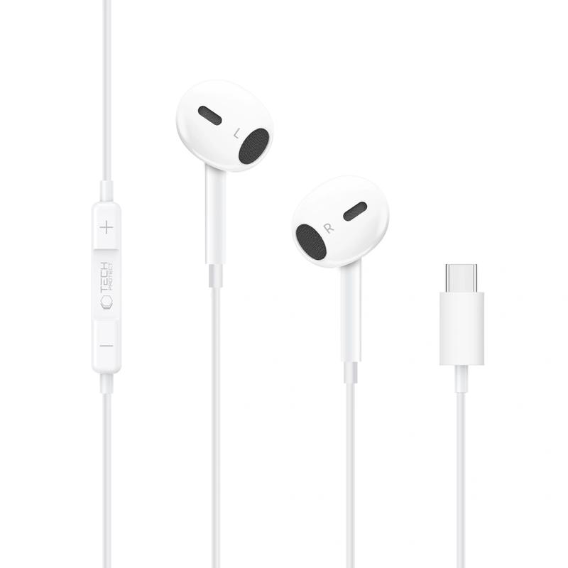 Tech-Protect Ultraboost Core G2 USB-C-høretelefoner - In-Ear-hovedtelefoner med ledning og mikrofon, 20-20 kHz frekvensrespons