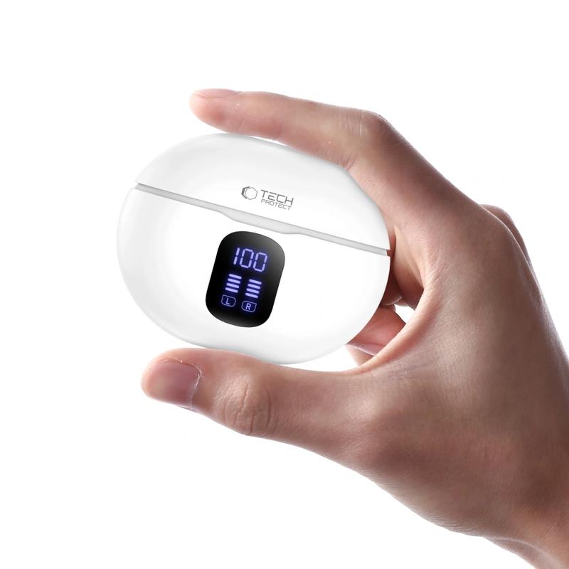 Tech-Protect UltraBoost TWS Core G2 trådløse øretelefoner med LED-display - hvid