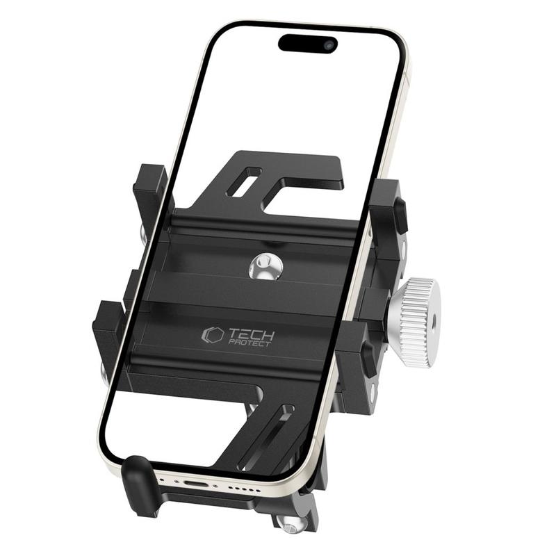 V1 metalcykelholderen fra Tech-Protect er det bedste valg i sit segment og tilbyder konstruktion og funktionalitet af høj kvalitet. Denne cykelholder er lavet af en holdbar aluminiumslegering og har et håndtag med et fortykket skaft og skridsikre måtter, der giver et sikkert greb om styret på cykler eller motorcykler. De justerbare kæber med ampulleskruer giver en stiv og sikker pasform til telefoner fra 55 mm til 95 mm i bredden. Desuden er kæberne polstrede for at forhindre ridser, og holderen kan drejes 360°.