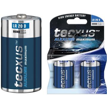 Tecxus LR20/D alkaliske batterier 1.5V - 2 stk.