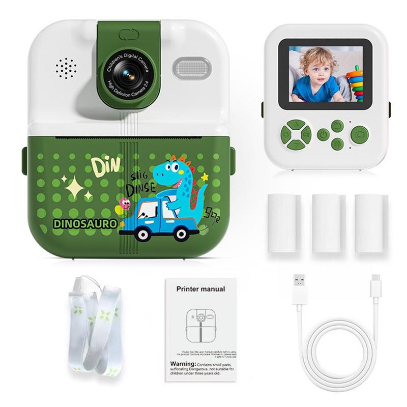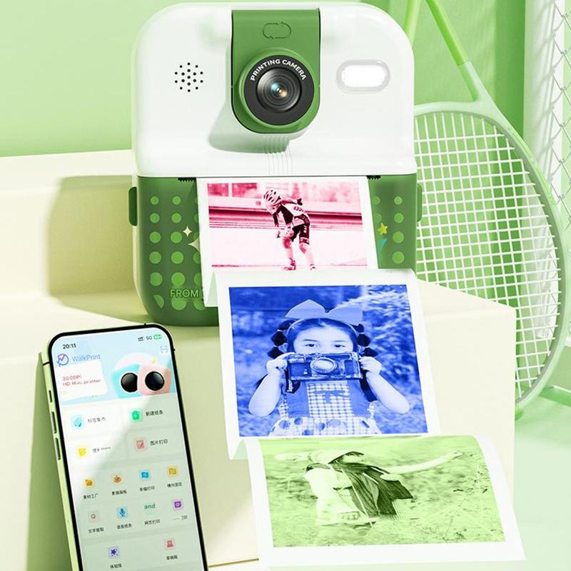 Tegneseriedyrdesign P02 Instant-kamera til børn med 2,4" IPS-skærm og 180° drejeligt objektiv - WalkPrint-app, USB-C, 1500 mAh, termisk fotoprinter