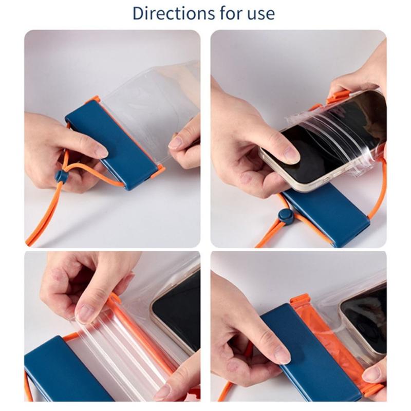 Perfekt til pools, strande, fiskeri, svømning, sejlads, skiløb, sejlads, kajak, snorkling, tubing, rafting, brusebad, sauna og andre vandparkaktiviteter, holder din telefon og pung helt tør og sikker