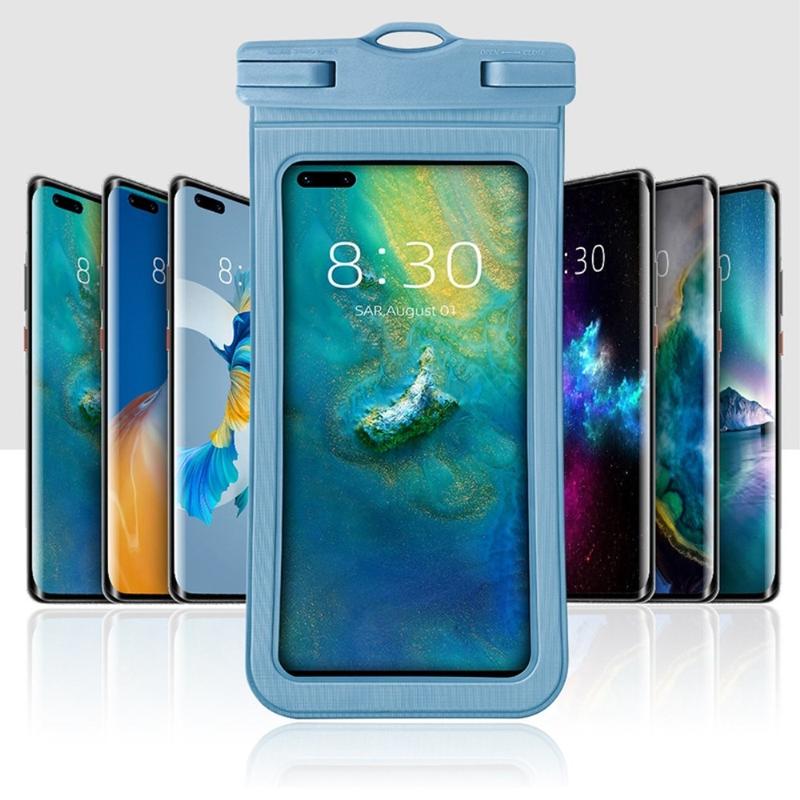 Tekstureret IPX8 vandtæt etui m. rem - 7" - Lyseblå