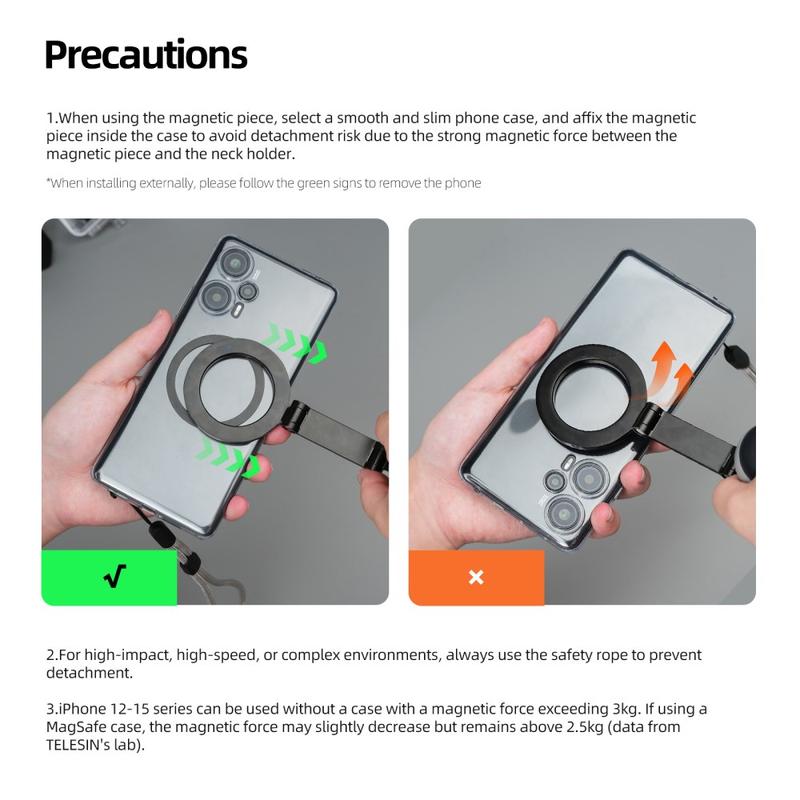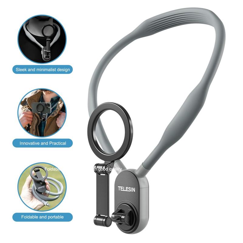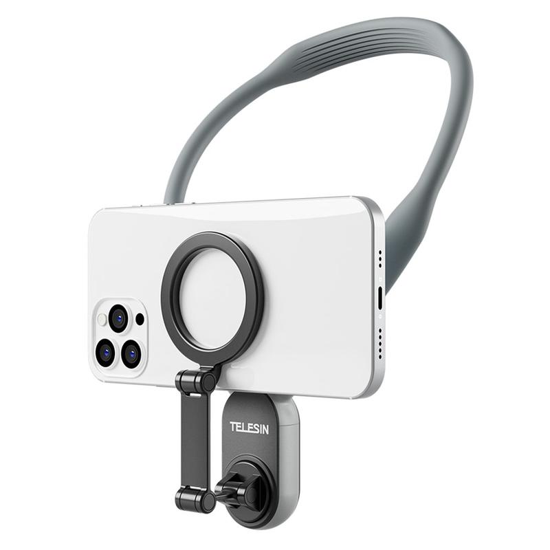 TELESIN MNM-001 til iPhone 12 / 13 / 14 / 15/ 16 Silikone nakkeholder magnetisk selfie stick telefon nakkeholder - grå