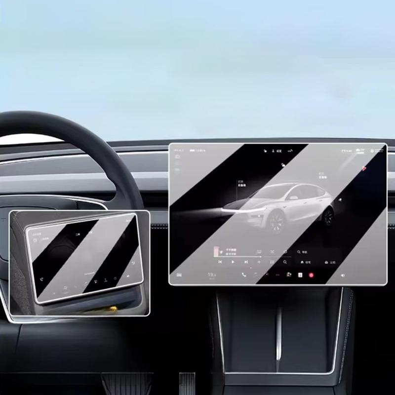 Beskyt begge Tesla-skærme med dette 2-delt skærmbeskytter-sæt i hærdet glas, der er designet til Tesla Model L og Model Y (2025-2026). Sættet indeholder en beskytter til den store 16" front-touchscreen og den 8" bageste passagerskærm, som hjælper med at beskytte mod ridser, fingeraftryk og daglig slitage, samtidig med at den originale skærms glatte berøringsrespons bevares.
