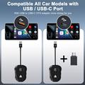 - Bred Kompatibilitet: Kompatibel med alle køretøjer med fabriksinstalleret kabelforbundet CarPlay eller Android Auto. Fungerer med USB- og USB-C-porte og inkluderer en USB-til-USB-C OTG-adapter for ekstra fleksibilitet.