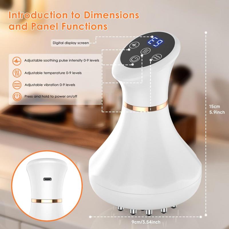 Det trådløse design gør det nemt at flytte den rundt på forskellige områder af kroppen, mens det digitale display giver mulighed for hurtig og præcis styring af indstillingerne. Uanset om du ønsker at slappe af efter en lang dag, fokusere på områder med muskelspændinger eller tilføje et opvarmende massagetrin til din wellness-rutine, tilbyder denne enhed fleksibel brug til forskellige behov. Kombinationen af varme og vibrationer er med til at skabe en mere beroligende oplevelse, mens den integrerede lysterapi tilføjer et ekstra plejeelement for brugere, der er interesserede i en hud, der ser glattere ud og føles fastere.