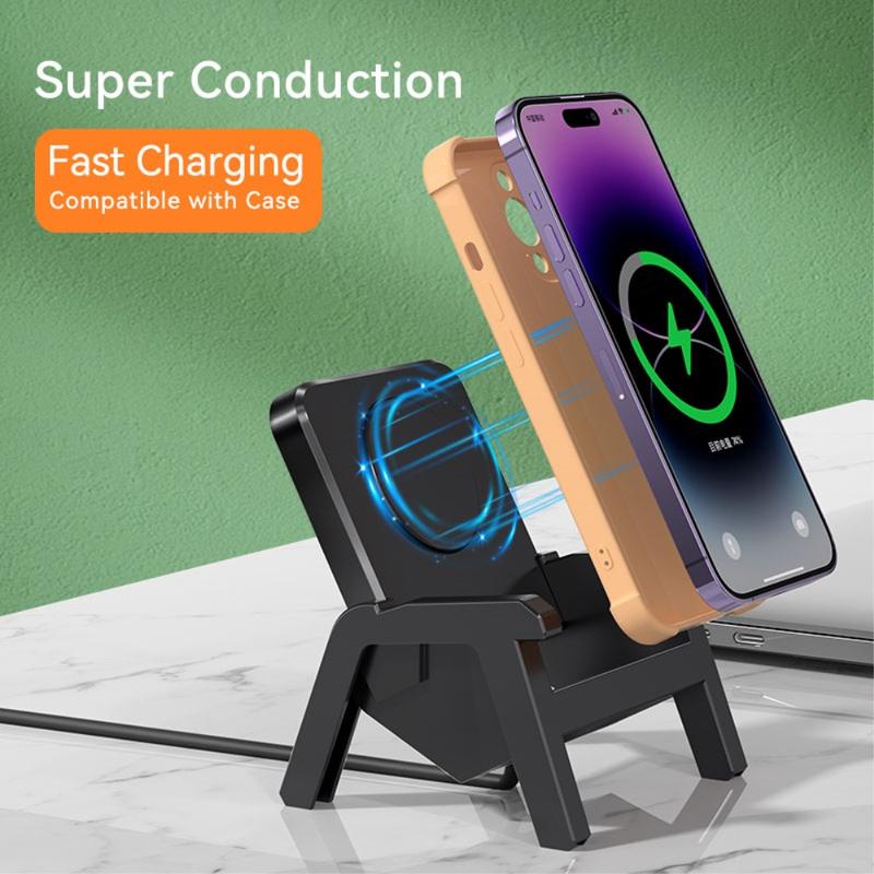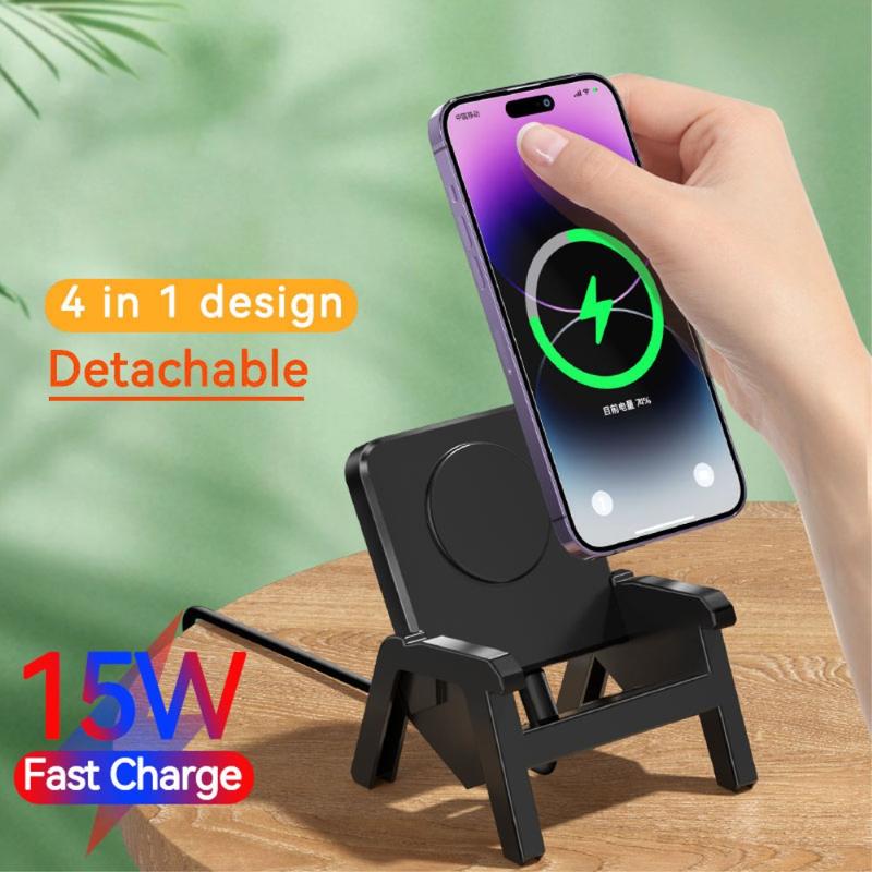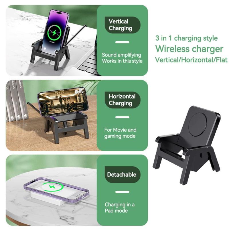 Stolelignende trådløs opladerstander og lydforstærker - 15W - sort