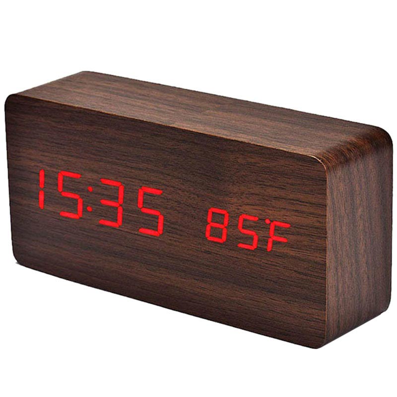 Meget praktisk LED vækkeur i træ design, som forskønner ethvert rum. Det viser klokken og den aktuelle rumtemperatur.