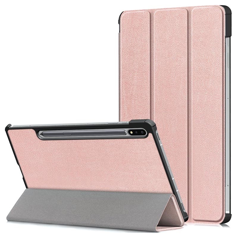 Tri-Fold Series Samsung Galaxy Tab S7 FE Smart Folio Cover - Rødguld