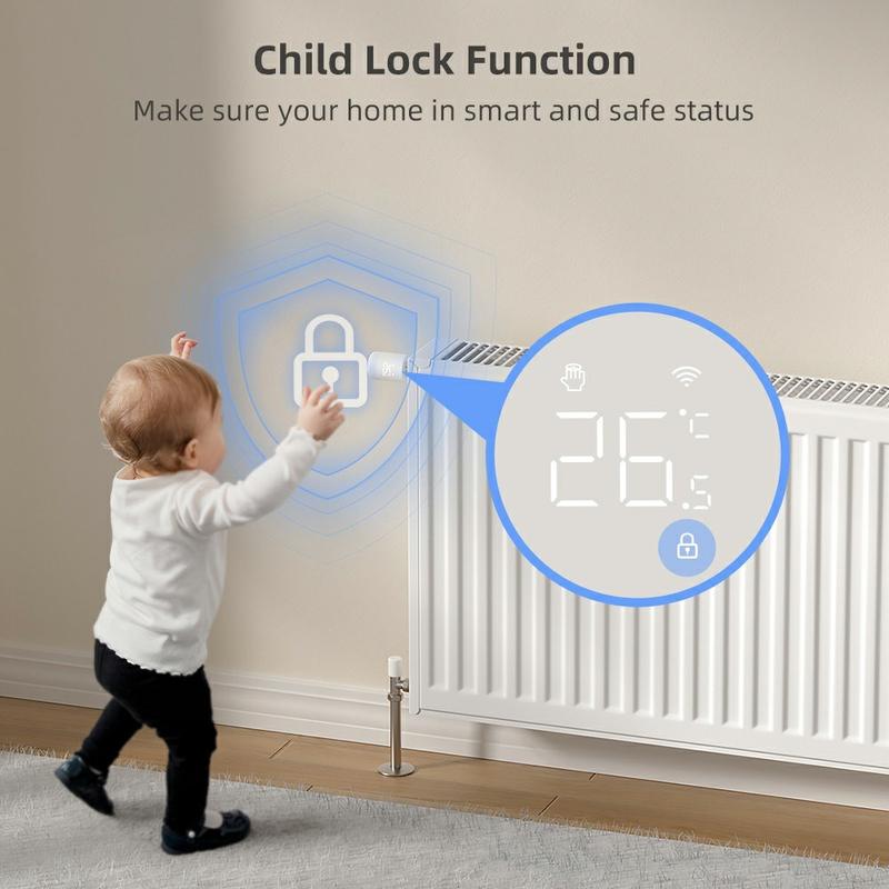 - Stille og holdbar ydeevne: Udstyret med en metalgearmotor sikrer termostaten en mere støjsvag drift og større holdbarhed.