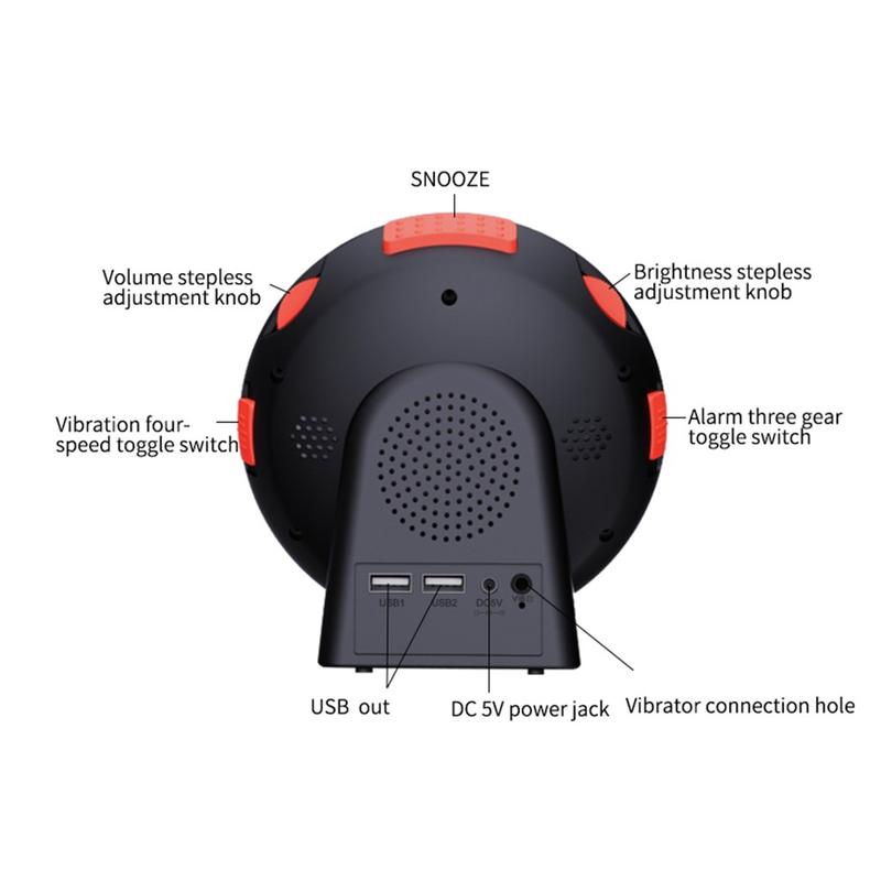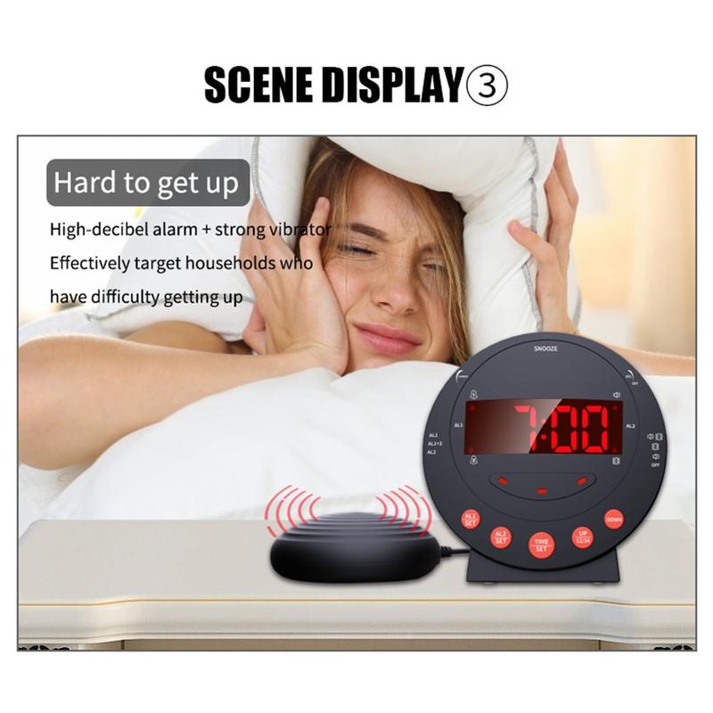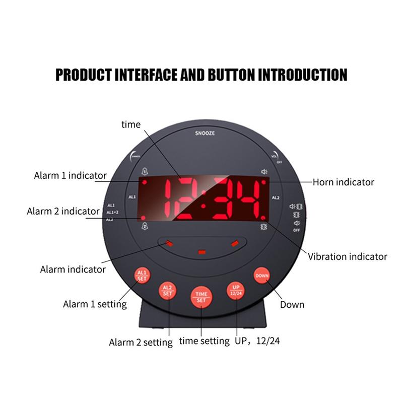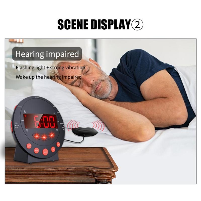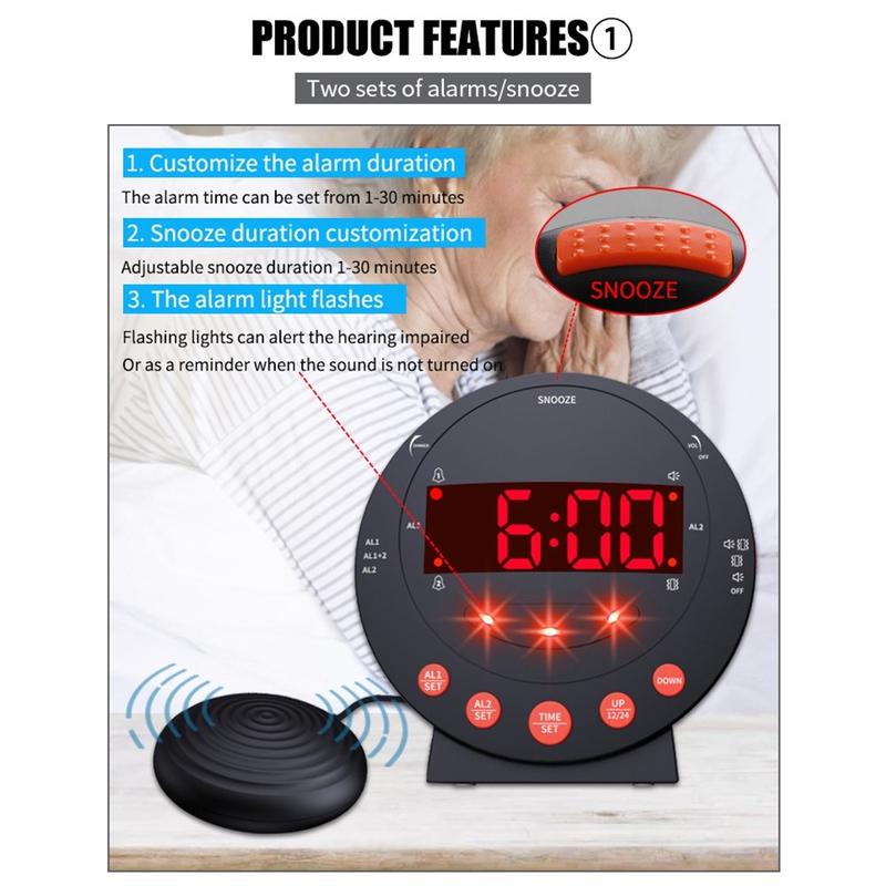 TS-BC600 Højt vibrerende vækkeur med 12/24 timers display til døve, hørehæmmede og seniorer - 3x AAA-batterier (medfølger ikke)