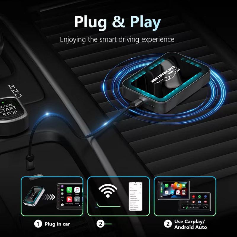 - Trådløs opgradering: Konverter kablet CarPlay eller Android Auto til en trådløs forbindelse, så dit instrumentbræt forbliver kabelfrit.