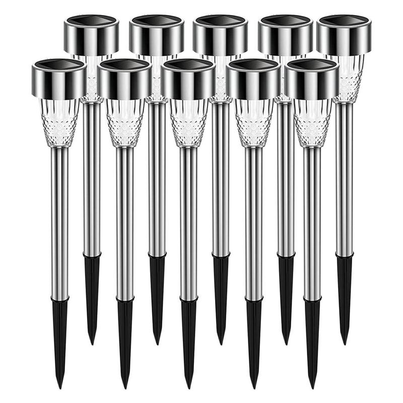 Udendørs, dekorative, vandtætte, anti-deformerende solcellelys i rustfrit stål - 10 stk.