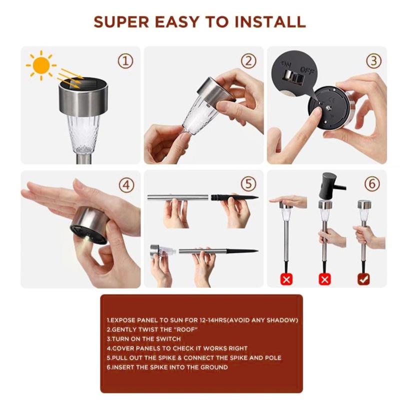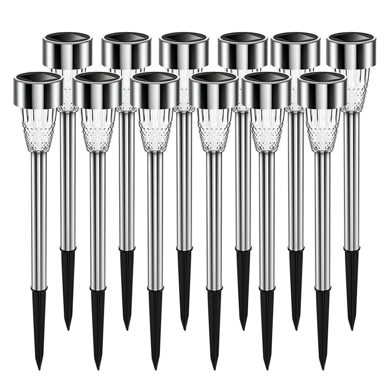 Udendørs, dekorative, vandtætte, anti-deformerende solcellelys i rustfrit stål - 12 stk.