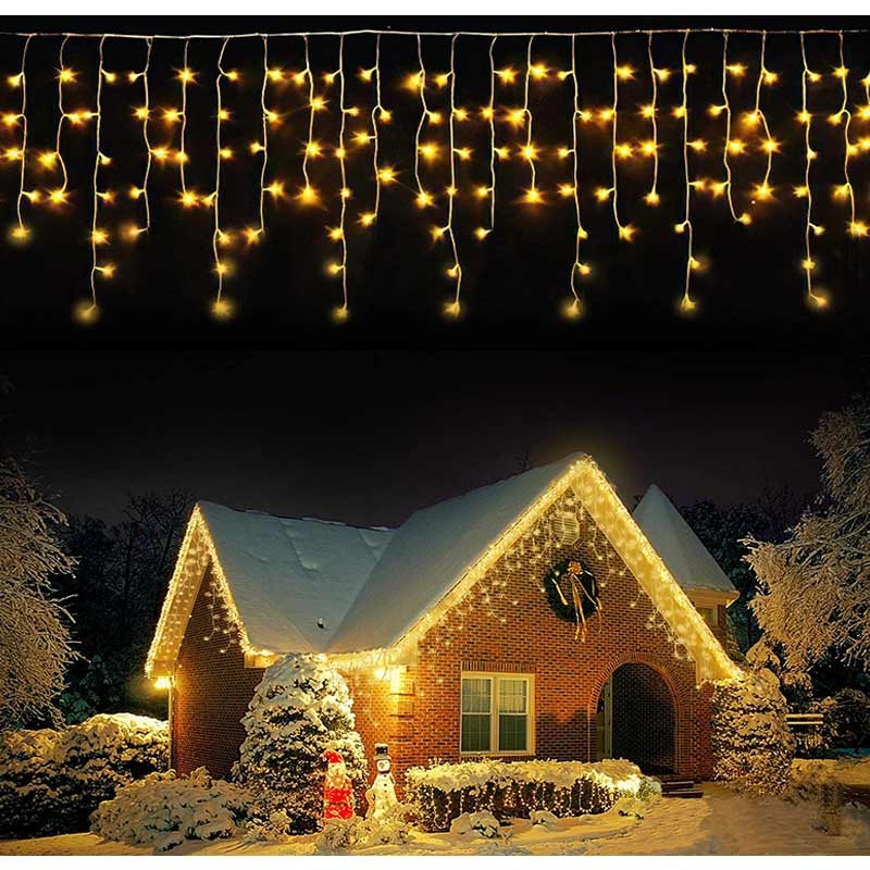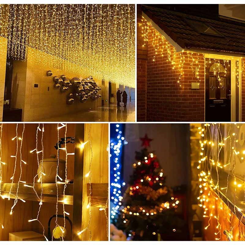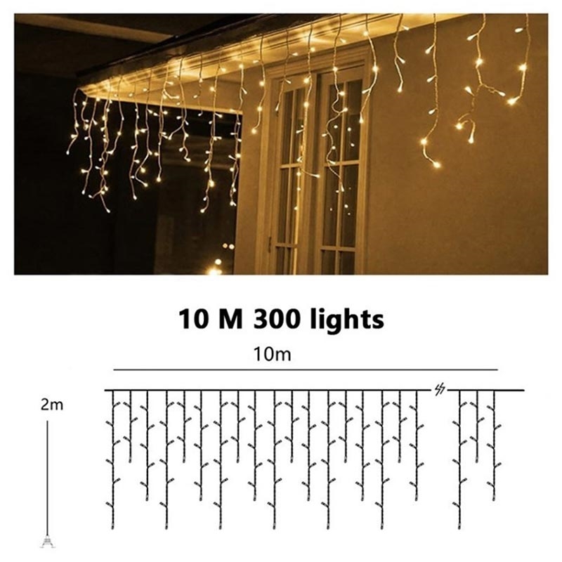 - Vandfaldsgardin med 300 varmhvide LED'er, der giver et blødt, indbydende skær