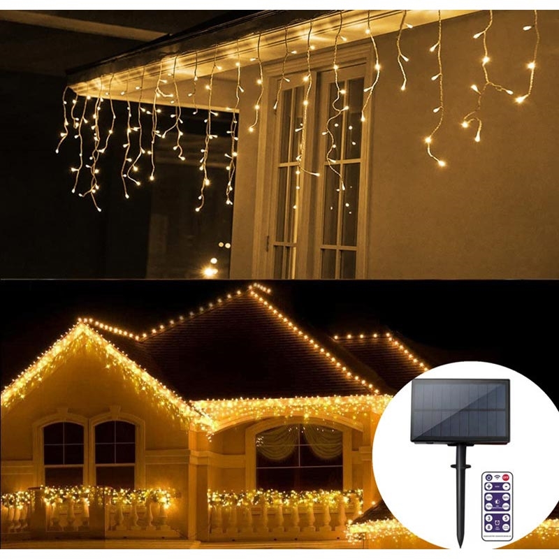 Solcelledrevne gardinlyskæder 10m - 300 LED vandfaldslyskæder med fjernbetjening, IP55