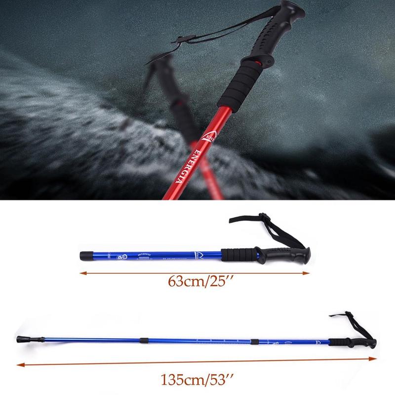 Gør dine udendørs eventyr endnu bedre med denne 135cm udtrækkelige vandrestav. Den er lavet af en let, men robust aluminiumslegering og giver fremragende stødabsorbering for at reducere påvirkningen af dine knæ under vandreture eller klatring. Med et ergonomisk greb til behagelig håndtering og justerbar længde er denne stav perfekt til brugere i alle aldre. Det foldbare design gør den nem at opbevare og transportere og giver balance og stabilitet i forskellige terræner.