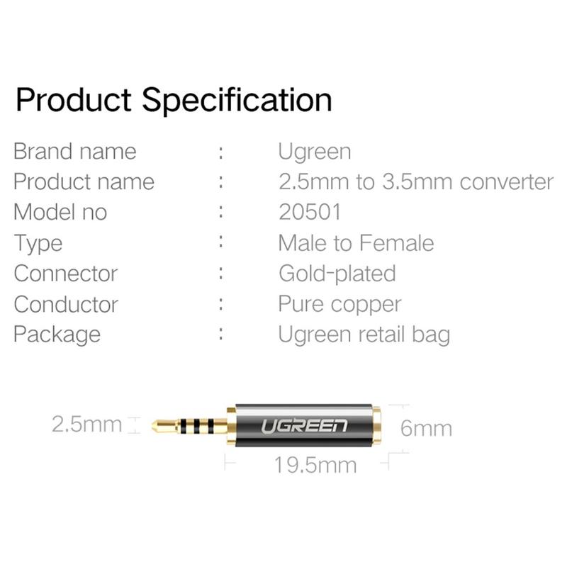 Ugreen 2.5mm han til 3.5mm hun stereolydadapter med guldbelagte stik