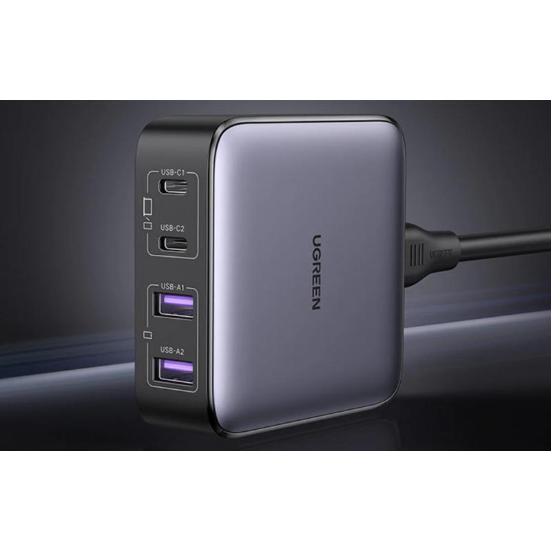 Ugreen Nexode 65W 4-ports bordoplader - Dual USB-C PD & Dual USB-A QC Fast-Charge Hub, kompakt GaN-design