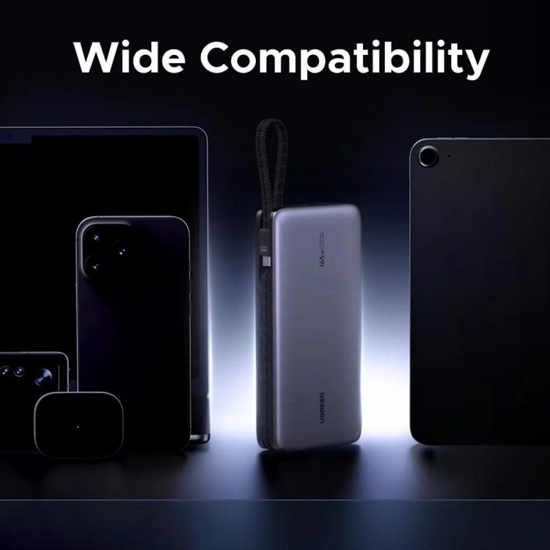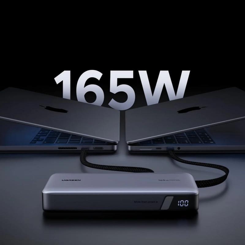 Ugreen PB552 25000mAh Powerbank med dobbelt indbygget USB-C-kabler (PD 3.1) - 165W