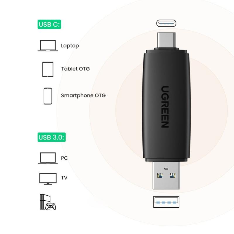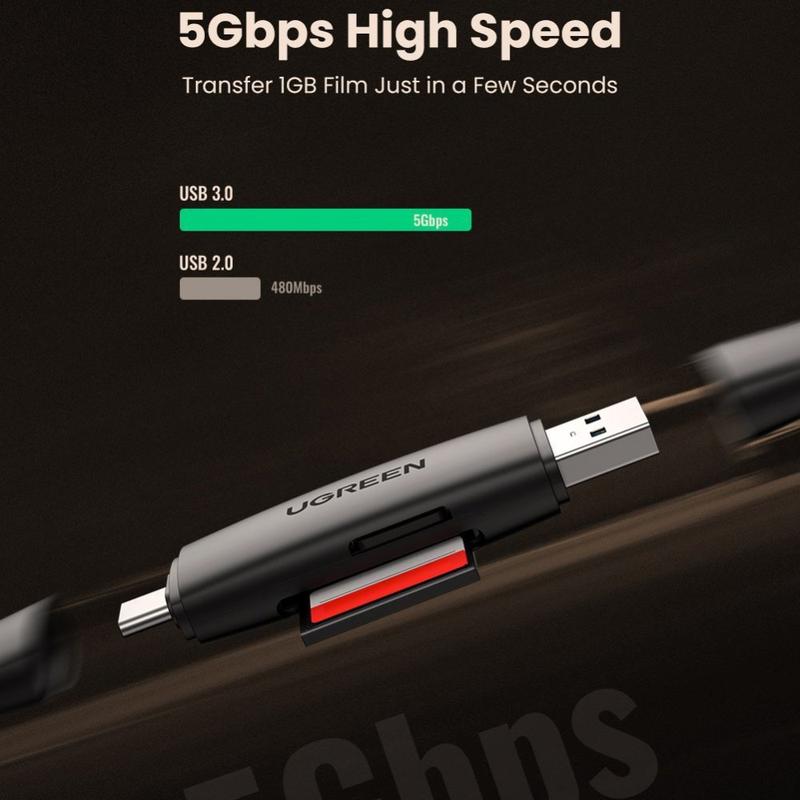 Ugreen USB-C og USB-A SD microSD-kortlæser 5 Gbps - 2-i-1 OTG-adapter med dobbelt slot