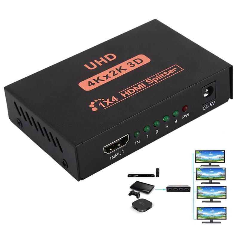 Split et HDMI-input-signal i fire identiske output-signaler, og overfør videoer og lyd uden nogen former for kvalitetstab med denne kvalitetsrige HDMI-splitter. Du kan bruge den til at matche din bærbar computer, DVD, set-top boks eller spillekonsol til op til fire HDMI TV’er eller projektorer. Den understøtter fuld HD 1080p, 3D opløsning og kan nå op til 3840x2160 billedopløsning.