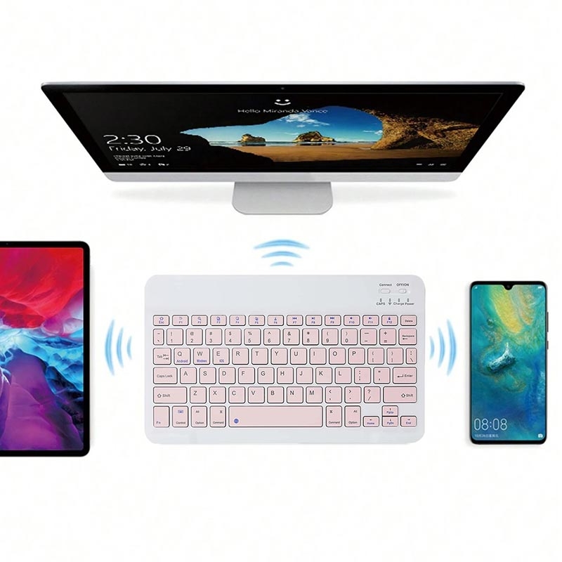 Dette tastatur tilsluttes via Bluetooth og understøtter en lang række enheder, herunder tablets og smartphones fra mærker som iPad, Huawei, Xiaomi m.fl. Nyd stabil trådløs ydeevne uden kabler, hvilket gør det ideelt til fleksible arbejdsmiljøer.