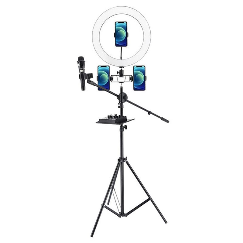 UN-700 10'' LED Ring Light med stativ Sound Card Tray og 3 telefonholdere til Selfie YouTube Video Photography Makeup