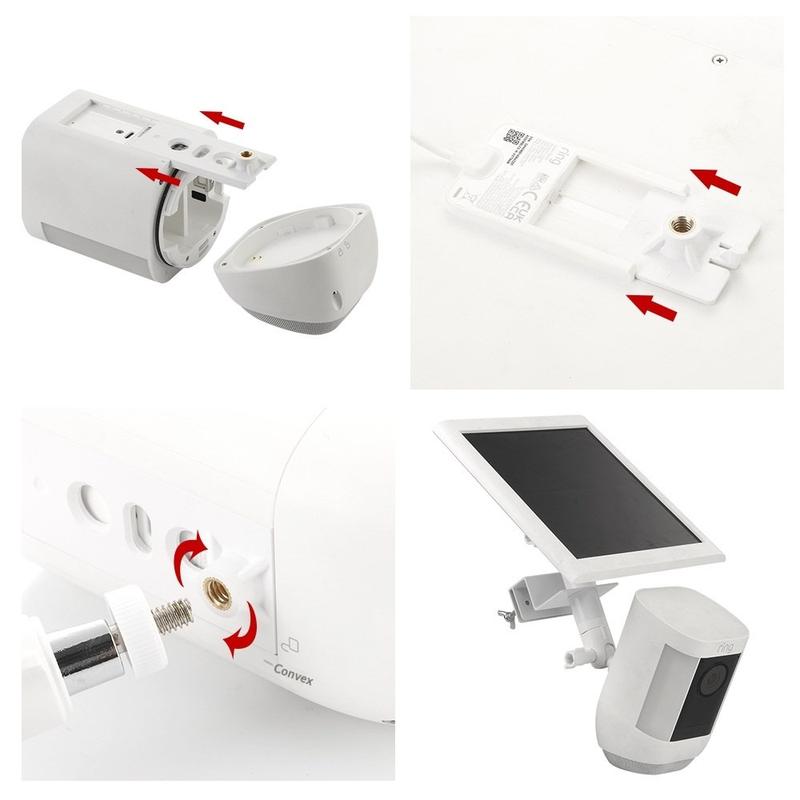 Beslaget er udstyret med udskiftelige adapterbaser og er kompatibelt med populære enheder fra Arlo, EufyCam og Ring, herunder kamerahoveder og matchende solpaneler. Det gør det til et alsidigt valg til blandede eller opgraderede sikkerhedsopsætninger.