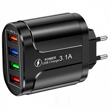 Universal 4-Port Hurtig Oplader USB Power Adapter - QC3.0, 48W, EU Stik