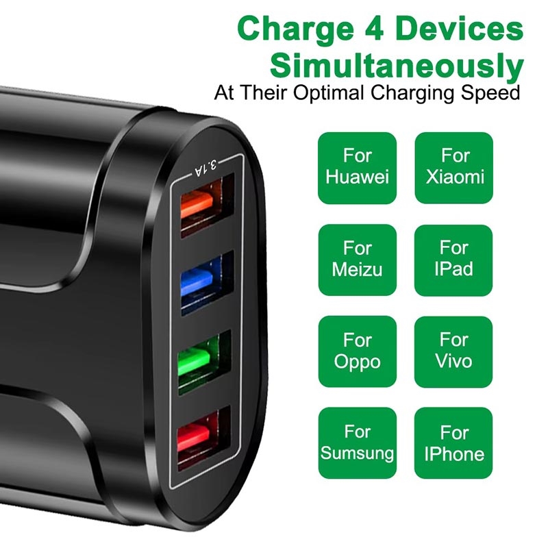 USB-strømadapter dine enheder hurtigere og mere stabilt. Den er udstyret med 4 USB-udgangsporte, så du hurtigt kan oplade op til fire enheder samtidigt. På grund af dens lette og kompakte størrelse kan du tage den med overalt.