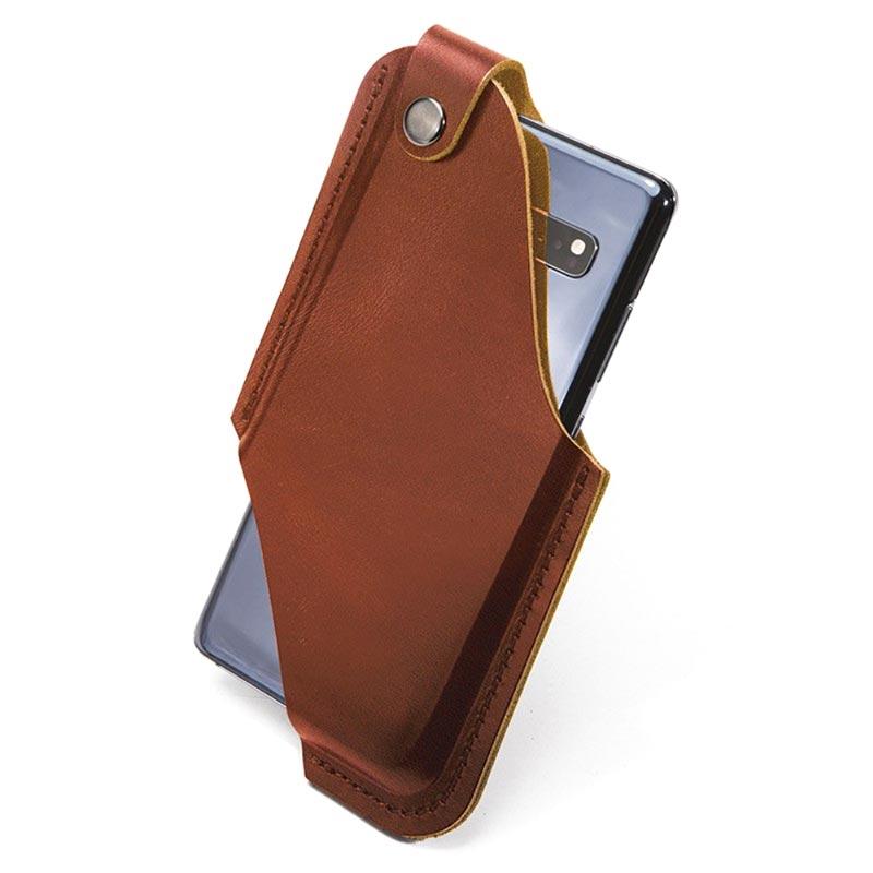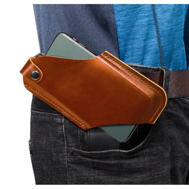 Tøm lommerne ved at bære din telefon rundt om hoften i dette hylsterformede cover af ægte læder. Dette lædercover passer til telefoner der er op til 18cm x 9cm, og knappen sikrer at hylsteret holder sikkert fast om telefonen. Hylsteret er lavet af ægte læder i premium kvalitet.