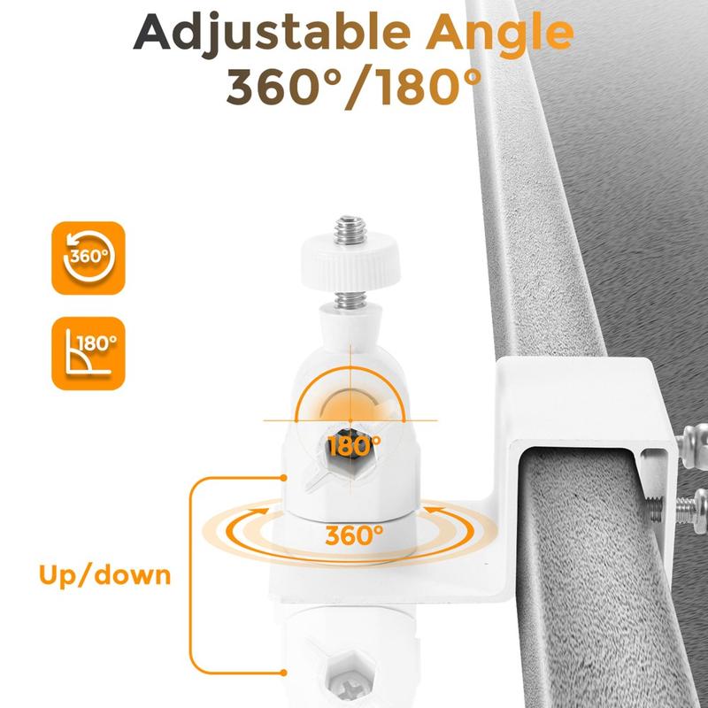 Universelt beslag til rækværk og tagrender til sikkerhedskameraer - 360° justerbart panoreringsbeslag i aluminium med 1/4"-skrue