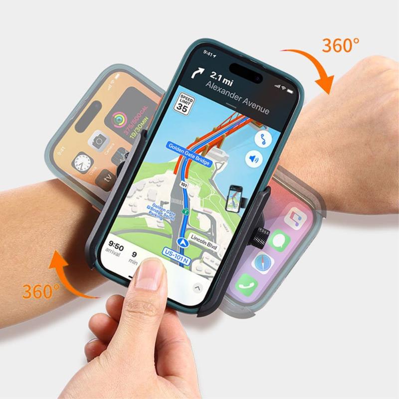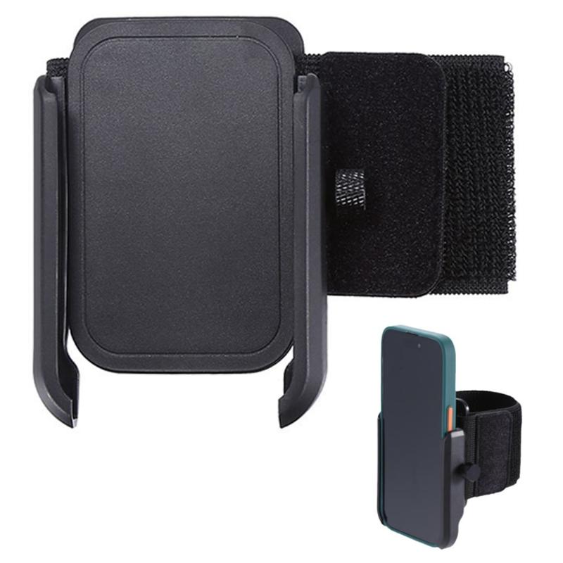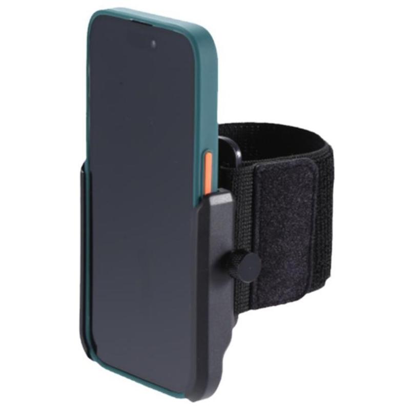 Denne holder er designet som et armbånd, der også kan justeres til at passe på en arm, og er ideel til håndfri brug under fysiske aktiviteter