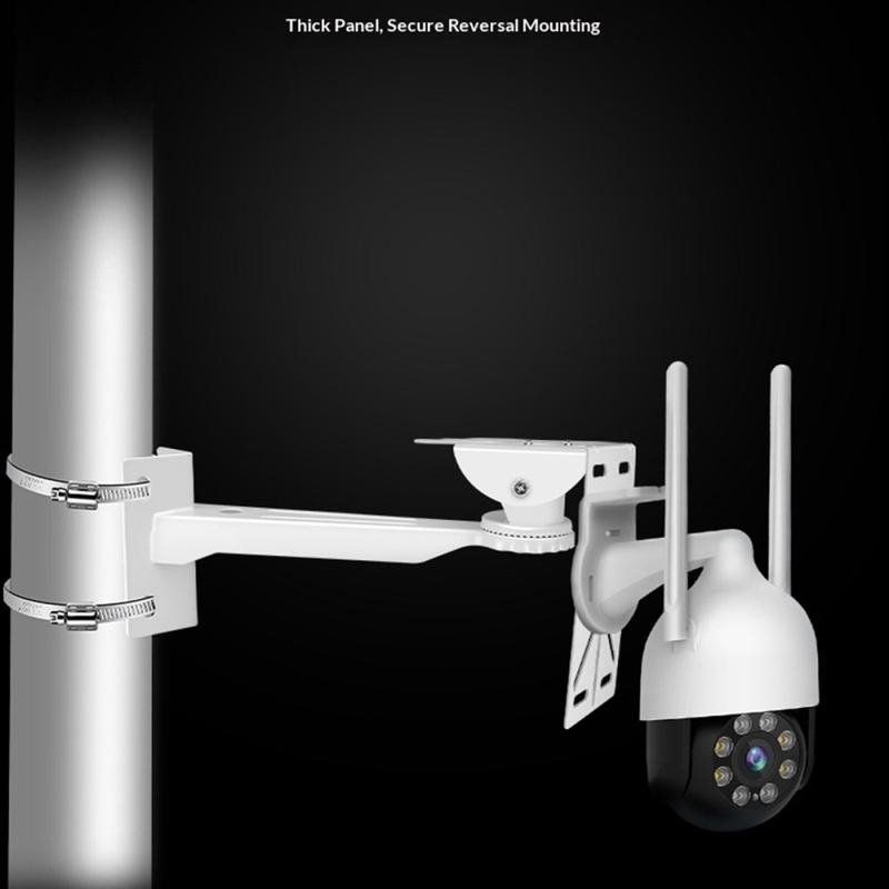 Beslaget har 360 graders rotation, hvilket giver mulighed for nøjagtig justering af kameravinkler. Denne fleksibilitet hjælper med at reducere blinde vinkler og sikrer, at det overvågede område altid er inden for kameraets synsfelt.