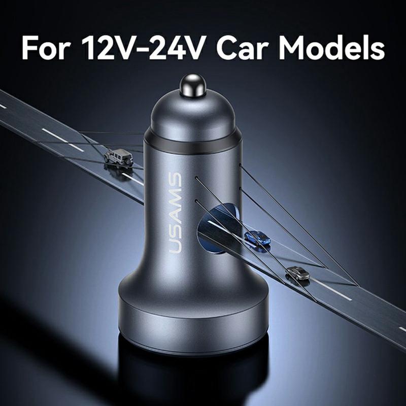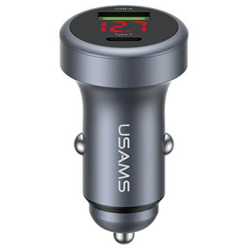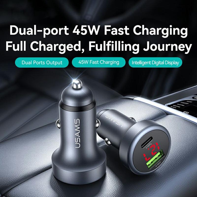 Usams CC327 C44 biloplader med to porte - 45W hurtigopladende aluminiumsadapter med spændingsvisning