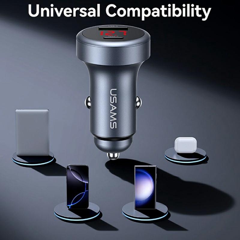 USAMS CC327 C44 tilbyder hastighed, sikkerhed og realtidsovervågning i et kompakt design. Med kraftig hurtigopladning, førsteklasses materialer og et smart spændingsdisplay er det en fremragende opgradering til bilister, der er afhængige af deres enheder, mens de er på farten.