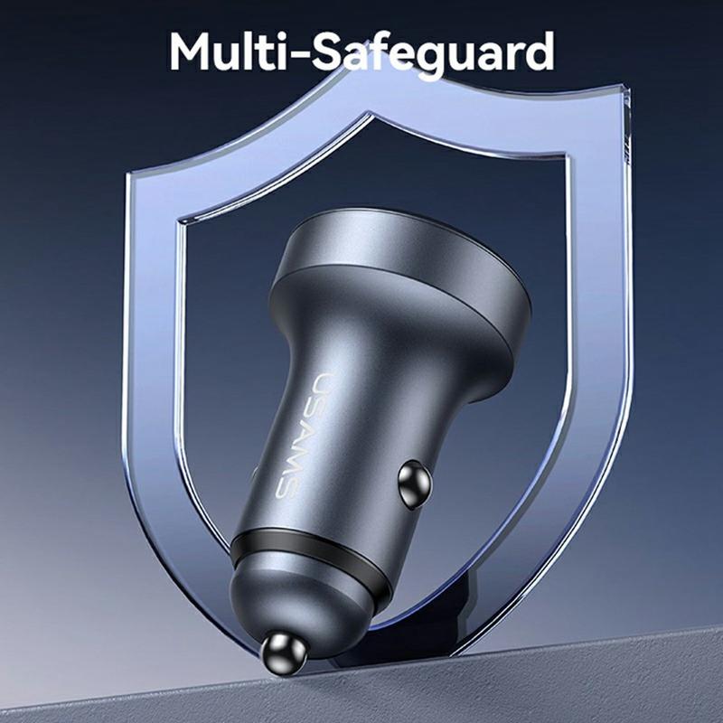 Usams CC327 C44 biloplader er designet til at levere hurtig, pålidelig strøm til nutidens mobile enheder under kørslen. Med USB-A- og Type-C-udgange i et kompakt aluminiumshus giver den mulighed for at oplade to enheder samtidig uden at gå på kompromis med hastighed eller sikkerhed.