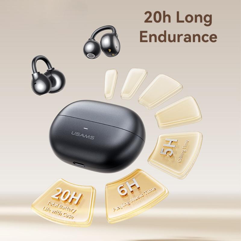 Usams Echo R02 Clip-On trådløse øretelefoner - 25 timers samlet spilletid, Bluetooth 5.3 komfort på farten