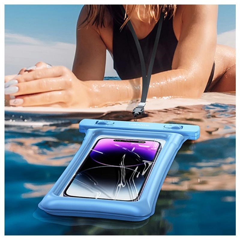 Forbered din smartphone til vandbaserede aktiviteter! Dette Usams US-YD011 flydende vandtætte cover til smartphones op til 7 tommer skærmdiagonal er en ideel løsning til at holde din enhed tør og beskyttet, mens du er på stranden, ved poolen eller på regnfulde dage.
