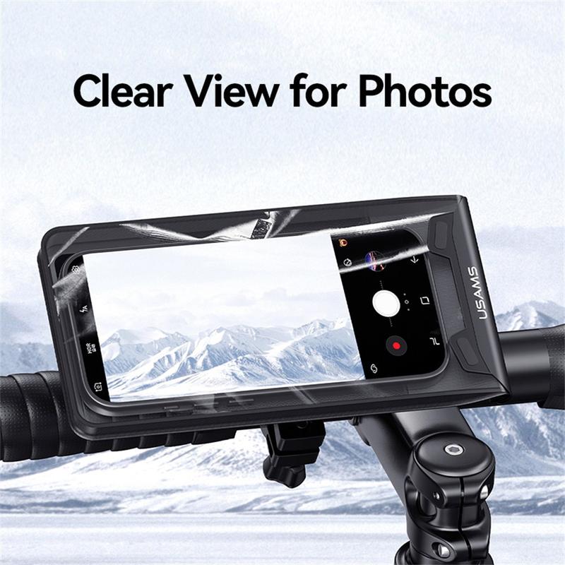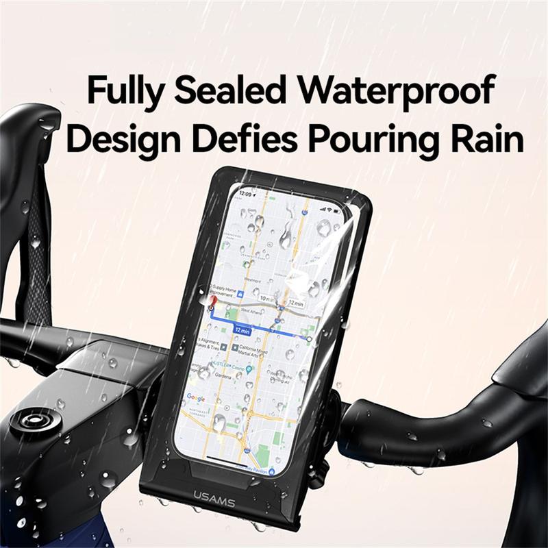 Usams ZJ083 vandtæt cykelholder til telefon med gennemsigtigt vindue - 360 graders drejelig styrholder (4,7-7,2 tommer)