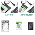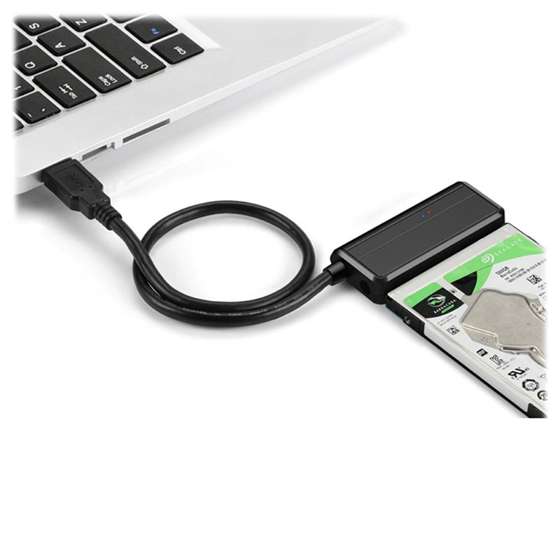 USB-adapter til at tilslutte SATA I/II/III-harddisk. Udstyret med en 12V DC indgang kan både 2,5" og 3,5" drev tilsluttes (strømadapteren til 3,5" disken medfølger ikke). Takket være USB 3.0 og UASP protokollen kan dataoverførsel opnå op til 5Gb/s.