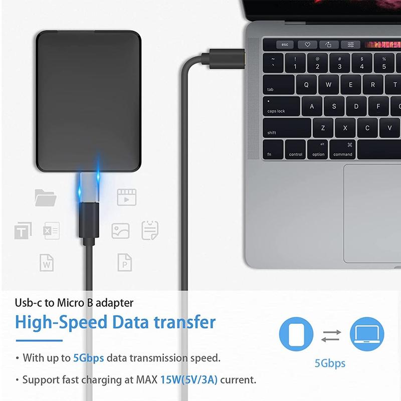 USB-C hun til USB 3.0 Micro-B han adapter - 5 Gbps harddisk SSD-konverter, aluminiumslegering, 15 W